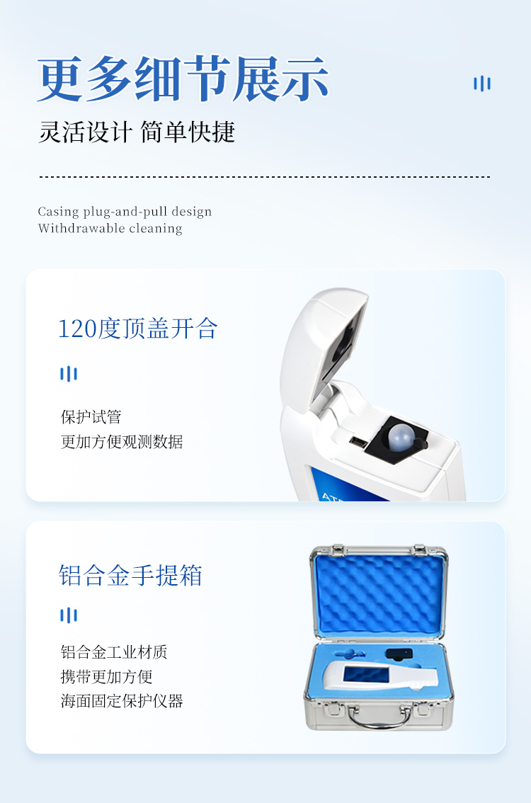 隨機(jī)配置:ATP熒光檢測(cè)儀(手持)主機(jī)、儀器包、掛繩、電池、PC數(shù)據(jù)線、數(shù)據(jù)分析軟件、中文操作手冊(cè)