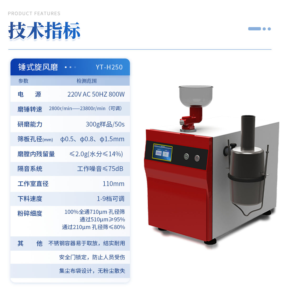 YT-H250錘式旋風(fēng)磨是本公司根據(jù)市場(chǎng)需求獨(dú)立研究開發(fā)的設(shè)備,具有粉碎溫度低、噪音小等特點(diǎn)。