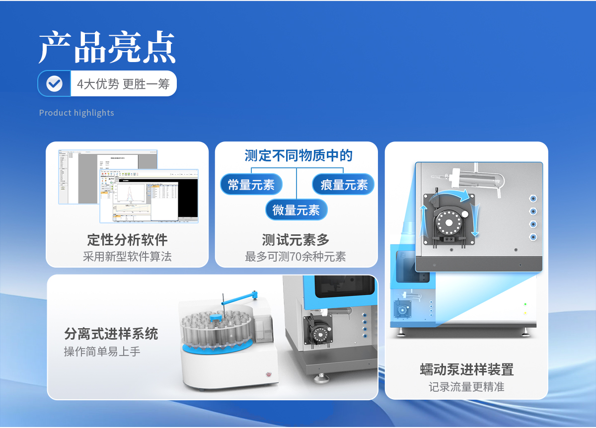1、測試元素多,*多可測 70 余種元素。 2、多元素同時測試,一次進(jìn)樣所有元素同時測試。 3、分析速度快,每分鐘約 5 個元素,*快測試速度可到每分鐘 10 個元素。 4、檢出限低,絕大多數(shù)元素可達(dá) ppb 級。 5、線性范圍寬,可達(dá) 5-6 個數(shù)量級,可以實現(xiàn)高低含量同時測試,無需更換標(biāo) 準(zhǔn)曲線。 6、化學(xué)干擾少,測試結(jié)果更加精準(zhǔn)。