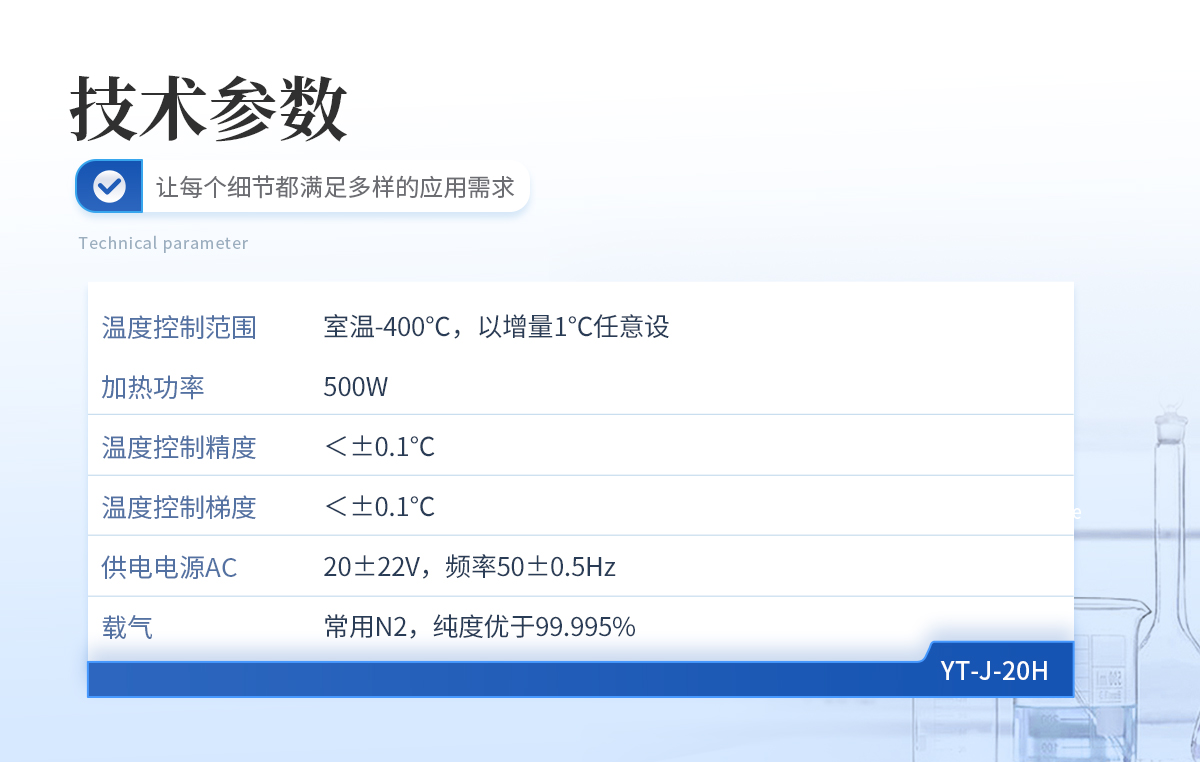 | 溫度控制范圍:室溫-400℃,以增量1℃任意設(shè) | 加熱功率:500W | 溫度控制精度:<±0.1℃ | 溫度控制梯度:<±0.1℃ | 供電電源AC:220±22V,頻率50±0.5Hz | 載氣:常用N2,純度優(yōu)于99.995% |
