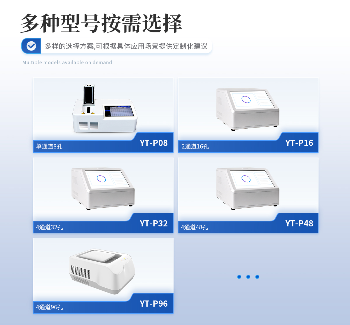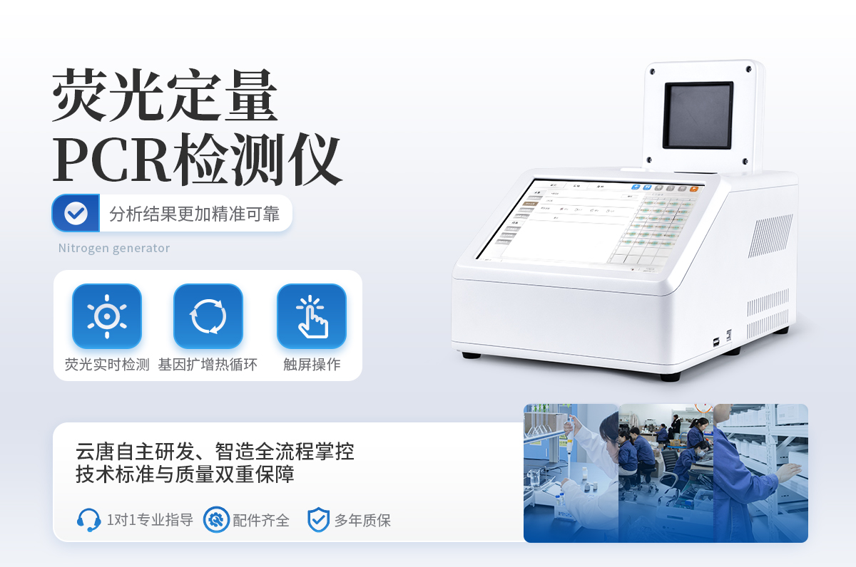 YT-P08型號 實時熒光定量PCR儀器的原理:聚合酶鏈?zhǔn)椒磻?yīng)(polymerase chain reaction,PCR)是一種用于放大擴(kuò)增特定的DNA片段的分子生物學(xué)技術(shù),它可看作是生物體外的特殊DNA擴(kuò)增,由高溫變性、低溫退火及適溫延伸等幾步反應(yīng)組成一個溫度循環(huán)周期,使目的基因得以迅速擴(kuò)增,具有特異性強、靈敏度高、操作簡便、省時等特點,是基因擴(kuò)增技術(shù)的一次重大革新。PCR技術(shù)可將極微量的目標(biāo)DNA特異地擴(kuò)增上百萬倍,從而大大提高對DNA分子的分析和檢測能力。