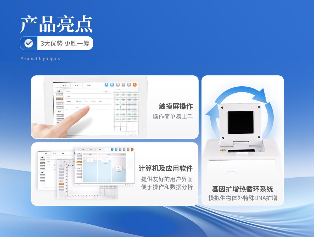 對取于其他動物體內(nèi)的生物樣本(如血液,體液等)中包含的目標(biāo)核酸,進(jìn)行快速精準(zhǔn)的定性和定量分析,同時也能夠?qū)μ厥鈽颖具M(jìn)行標(biāo)準(zhǔn)曲線,熔解曲線,基因分型等分析。