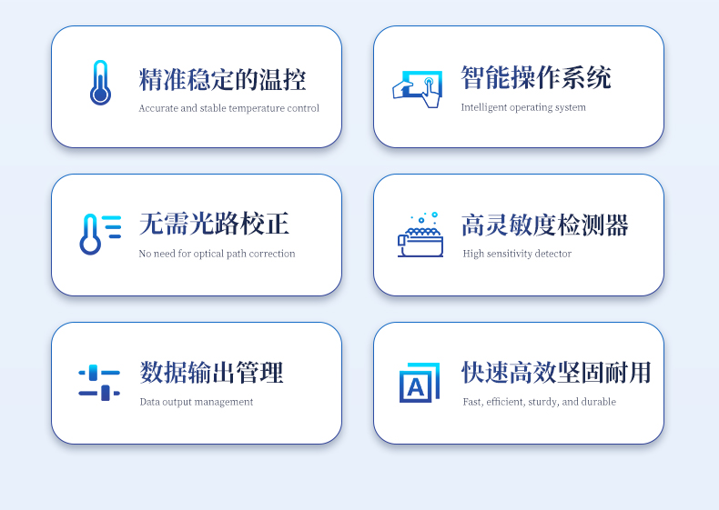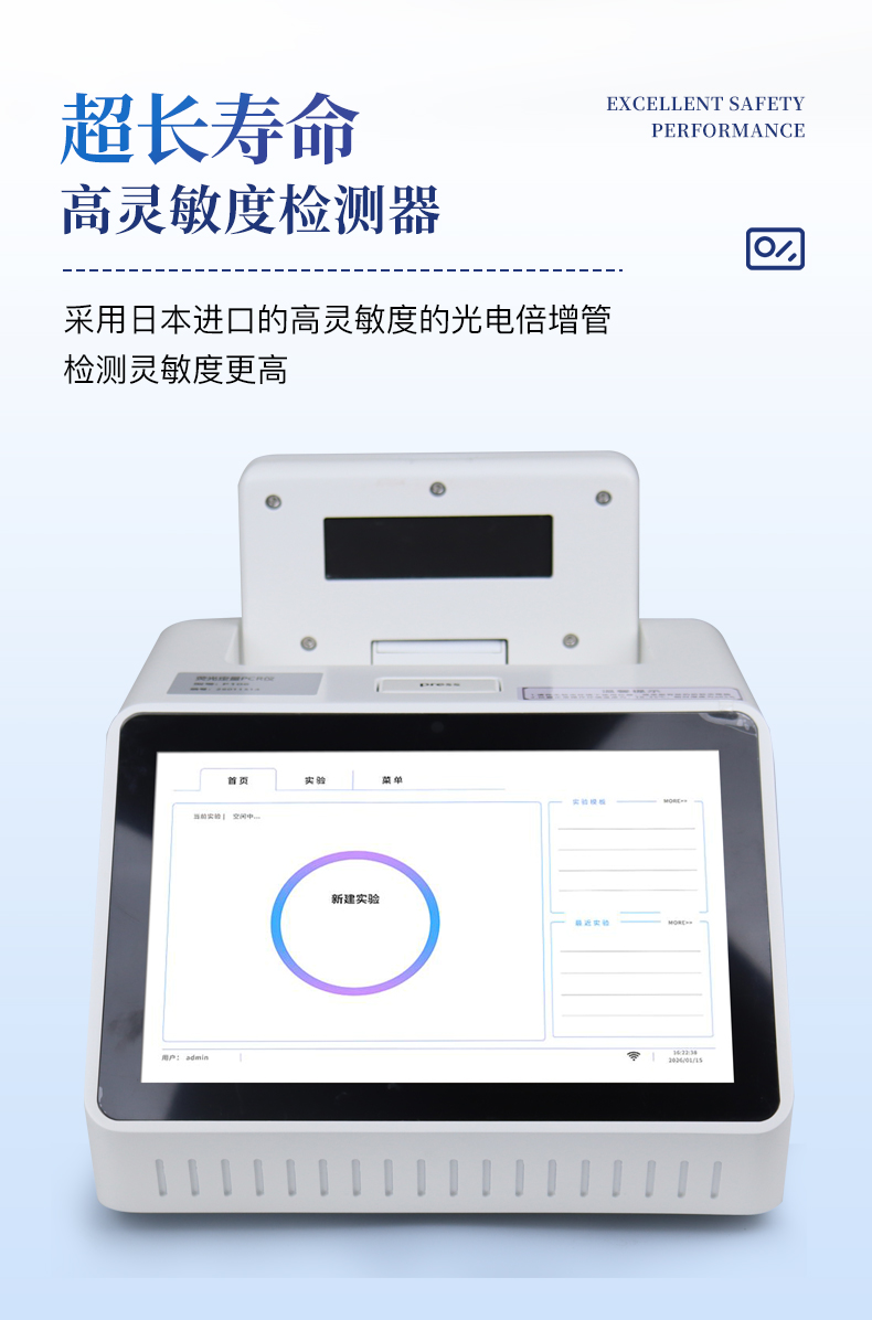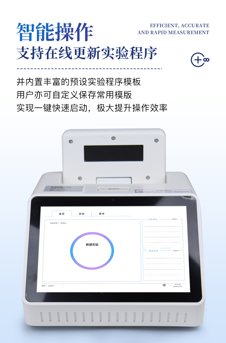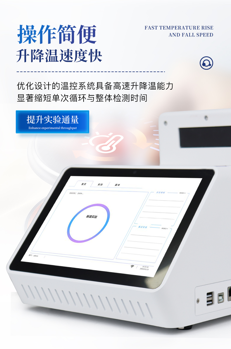 | 1.智能操作系統(tǒng),實(shí)驗(yàn)盡在掌握 | A雙模式靈活控制:支持通過(guò)儀器觸摸屏獨(dú)立運(yùn)行,也支持通過(guò)電腦軟件進(jìn)行遠(yuǎn)程控制與數(shù)據(jù)管理,適應(yīng)不同實(shí)驗(yàn)場(chǎng)景需求。 | B程序更新與預(yù)設(shè):支持在線更新實(shí)驗(yàn)程序,并內(nèi)置豐富的預(yù)設(shè)實(shí)驗(yàn)程序模板,用戶(hù)亦可自定義保存常用模版,實(shí)現(xiàn)一鍵快速啟動(dòng),極大提升操作效率。 | C極簡(jiǎn)啟動(dòng)體驗(yàn)(可選配):可定制集成攝像頭掃描系統(tǒng),用戶(hù)只需掃描樣品板或程序卡的二維碼,即可自動(dòng)識(shí)別并調(diào)用對(duì)應(yīng)實(shí)驗(yàn)程序,簡(jiǎn)化流程,避免人為設(shè)置錯(cuò)誤。 | D操作簡(jiǎn)單:無(wú)論是觸摸屏界面還是電腦軟件,均設(shè)計(jì)得直觀易懂,新用戶(hù)也能快速上手。預(yù)置常用程序模板,進(jìn)一步簡(jiǎn)化操作流程。 | 2.精準(zhǔn)穩(wěn)定的溫控與光學(xué)核心 | A長(zhǎng)久精準(zhǔn)的溫控系統(tǒng):采用進(jìn)口***TEC半導(dǎo)體制冷模塊,控溫精準(zhǔn)(±0.1°C),孔間溫度均勻性**(≤±0.3°C)。系統(tǒng)穩(wěn)定性卓越,長(zhǎng)期使用性能衰減小,校準(zhǔn)周期長(zhǎng)達(dá)數(shù)年,顯著降低維護(hù)成本與運(yùn)營(yíng)中斷。 | B免維護(hù)的靈敏光學(xué)系統(tǒng):配備4個(gè)獨(dú)立LED光源與4個(gè)獨(dú)立光電二極管檢測(cè)器,實(shí)現(xiàn)四通道熒光同步精準(zhǔn)檢測(cè)。采用超長(zhǎng)壽命進(jìn)口光源,設(shè)計(jì)壽命期內(nèi)免維護(hù),無(wú)需額外校準(zhǔn)或更換,保障檢測(cè)結(jié)果長(zhǎng)期一致性與高靈敏度。 | C卓越的數(shù)據(jù)質(zhì)量:實(shí)驗(yàn)線性相關(guān)性高(R2≥0.999),重復(fù)性?xún)?yōu)異(孔間CV值低),確保定量結(jié)果準(zhǔn)確可靠,數(shù)據(jù)置信度高。 | 3.**便捷的數(shù)據(jù)與輸出管理 | A多重?cái)?shù)據(jù)導(dǎo)出方式:支持通過(guò)USB存儲(chǔ)設(shè)備直接拷貝,或經(jīng)由Wi-Fi無(wú)線網(wǎng)絡(luò)傳輸數(shù)據(jù)至本地服務(wù)器或云端,方便靈活,滿(mǎn)足各類(lèi)實(shí)驗(yàn)室數(shù)據(jù)管理習(xí)慣。 | B豐富的報(bào)告導(dǎo)出與打?。褐С稚刹?dǎo)出多種格式(如PDF、Excel)的實(shí)驗(yàn)報(bào)告。儀器兼容USB熱敏打印機(jī)、藍(lán)牙無(wú)線打印機(jī)及常規(guī)A4打印機(jī),可直接在儀器上或通過(guò)電腦一鍵導(dǎo)出并打印專(zhuān)業(yè)報(bào)告,便于結(jié)果存檔與即時(shí)分享。 | 4.快速**與堅(jiān)固耐用 | A升降溫速度快:優(yōu)化設(shè)計(jì)的溫控系統(tǒng)具備高速升降溫能力,顯著縮短單次循環(huán)與整體檢測(cè)時(shí)間,提升實(shí)驗(yàn)通量。 | B超長(zhǎng)使用壽命:核心部件均選用工業(yè)級(jí)耐用材料與設(shè)計(jì),整機(jī)運(yùn)行穩(wěn)定可靠,致力于為用戶(hù)提供長(zhǎng)久的投資回報(bào)。 |