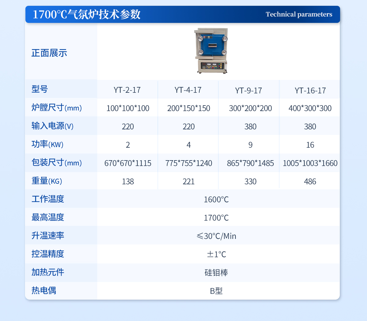 | SA2-2-17TP | 1700℃ | 100*100*100 | 220V/2KW | 670*670*1115mm,138KG |