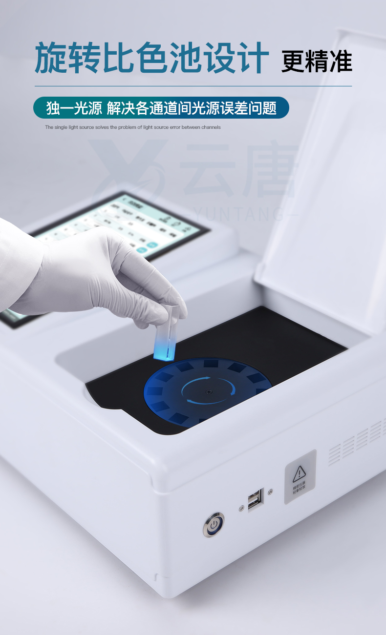 4、檢測通道:≥24通道;采用精密旋轉(zhuǎn)比色池設(shè)計(jì),使用同芯片同光源校準(zhǔn)精度,解決不同光源之間的誤差值,更加準(zhǔn)確**。(1-12通道間誤差0.1%,***:**202022821055.2)