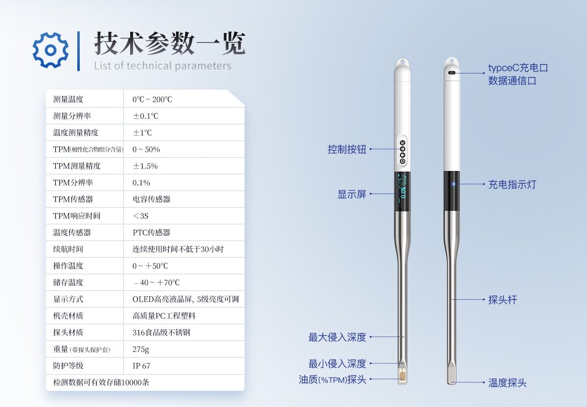 LH-SYP工業(yè)版特別適合食藥局、質(zhì)檢部門、學(xué)校企業(yè)食堂、連鎖快餐店、食品加工企業(yè)、油炸食品制造商、面包房等行業(yè)使用,也可以用于實驗室對食用油品質(zhì)的初步篩選,對劣質(zhì)油、地溝油的鑒別等。能為您達到檢驗油品品質(zhì)、節(jié)省食用油、保證產(chǎn)品的質(zhì)量、保證食品安全的目的。