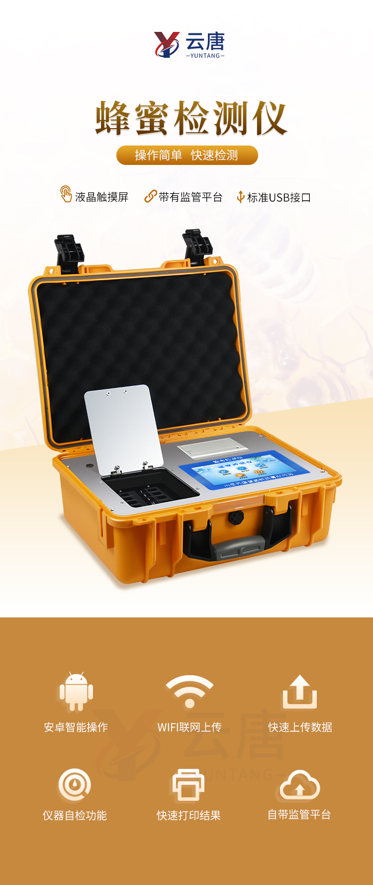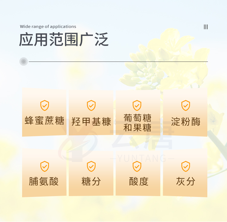 檢測(cè)項(xiàng)目:蜂蜜蔗糖、蜂蜜還原糖(葡萄糖和果糖)、蜂蜜羥甲基糠醛、蜂蜜酸度、蜂蜜中農(nóng)藥殘留、蜂蜜淀粉酶值、蜂蜜中脯氨酸、蜂蜜水分、蜂蜜糖分、蜂蜜中灰分,應(yīng)用范圍:應(yīng)用于現(xiàn)場(chǎng)檢測(cè)蜂蜜蔗糖、葡萄糖和果糖、羥甲基糠醛、酸度、農(nóng)殘、淀粉酶、脯氨酸、水分、糖分、灰分含量的蜂蜜快速檢測(cè)儀,可廣泛應(yīng)用于各類蜂蜜品質(zhì)的快速定量檢測(cè)。