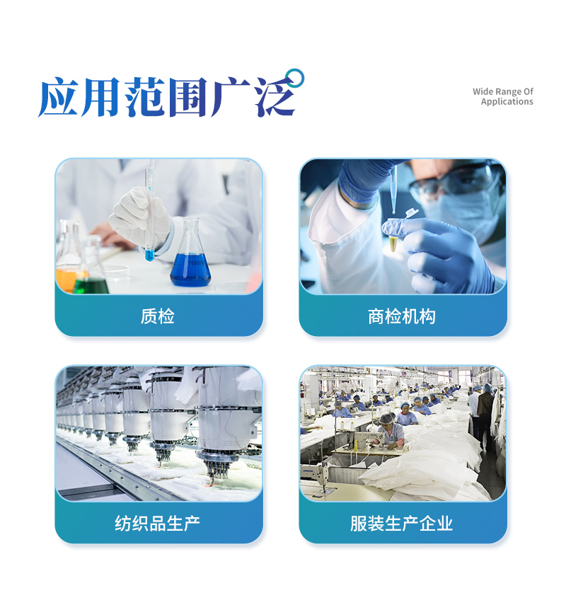 該紡織品甲醛檢測系統(tǒng)與質(zhì)檢、商檢機構(gòu)采用同樣執(zhí)行標準、檢測方法,專業(yè)為廣大紡織品、服裝等生產(chǎn)企業(yè)、質(zhì)檢商檢單位提供“一站式服務”,同時為各類紡織品甲醛實驗室提供專業(yè)的解決方案。