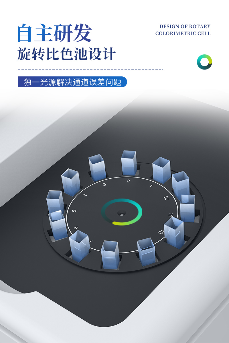 ?、?儀器采用精密旋轉(zhuǎn)比色池設計,使用同光源校準精度,檢測結(jié)果更為準確**。