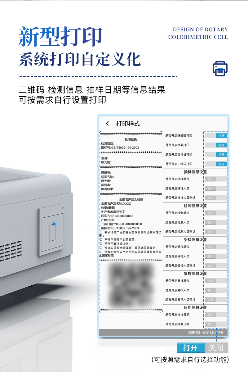 ?、?設備自帶打印功能,可對樣品信息及檢測結(jié)果無限次隨意打印。