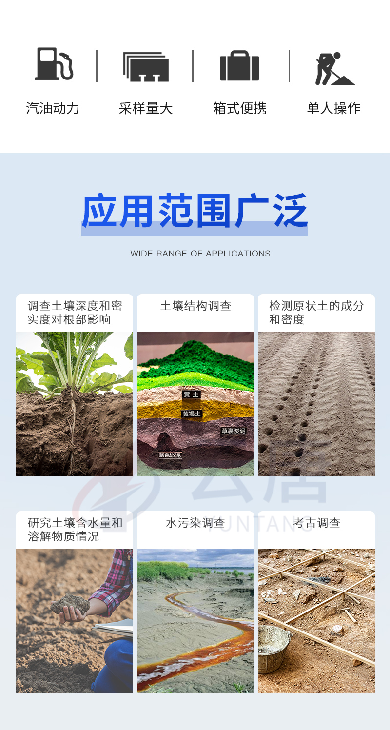 動(dòng)力(汽油)土壤采樣器(汽油動(dòng)力土鉆)土壤采樣器是本廠汲取廣大客戶意見、經(jīng)多方用戶需求和市場(chǎng)調(diào)研,開發(fā)出的一款動(dòng)力(汽油)土壤采樣器。儀器采用汽油機(jī)驅(qū)動(dòng)、以大幅減免土壤取樣人員的勞動(dòng)力和快速、取樣簡(jiǎn)便而著稱。