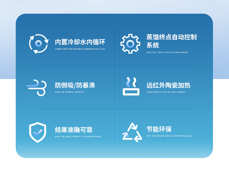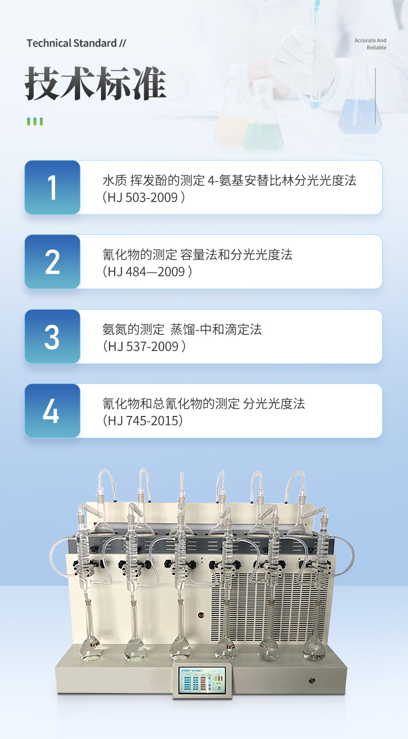 智能一體化蒸餾儀是根據(jù)實驗室蒸餾預處理操作規(guī)程,集恒溫加熱、蒸餾終點自動控制、冷卻水循環(huán)于一體的新型智能蒸餾處理裝置。