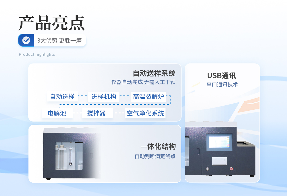 | 1、 手自一體化自動送樣系統(tǒng),將自動送樣、進樣機構(gòu)、高溫裂解爐、電解池、攪拌器、空氣凈化系統(tǒng)等部件巧妙地結(jié)合在一起,使儀器結(jié)構(gòu)更加緊湊,更加合理、更加穩(wěn)定。可在線式插隊添加樣品,無需人工送樣,自動化程度高,若樣品少也可采用手動送樣方式。 | 2、采用—體化結(jié)構(gòu),自動判斷滴定終點,縮短了實驗時間。所有關(guān)鍵部件均采用了設(shè)計理念及進行了嚴格的控制,確保儀器能長時間穩(wěn)定運行。 | 3、采用特別的數(shù)據(jù)采集網(wǎng)絡(luò)及多級校正技術(shù),確保高、中、低硫含量測試結(jié)果的準確性。 | 4、送樣機構(gòu)采用電子電解液分子濃度采集電路,可靠性高,不會產(chǎn)生過電解現(xiàn)象。 | 5、串口通訊技術(shù),可采用usb通訊,兼容性好,具有廣泛的適用性。 | 6、自由設(shè)置送樣時間及預(yù)置溫度,采用進口霍爾元件控制送樣位置。 | 7、采用剛玉瓷舟,減少卡樣的可能。一次可放1-24個樣由程序控制實現(xiàn)自動升溫、控溫、送樣、測定,結(jié)果自動存盤、自動打印,并可中途在線式插隊添加試樣,大大地提高了工作效率,真正實現(xiàn)無人值守; | 8、采用庫侖滴定法進行測定,測定時間可根據(jù)不同試樣自動判斷,速度優(yōu)于艾士卡重量分析法和高溫燃燒中和法; |